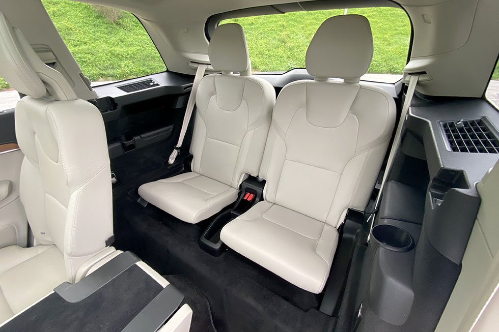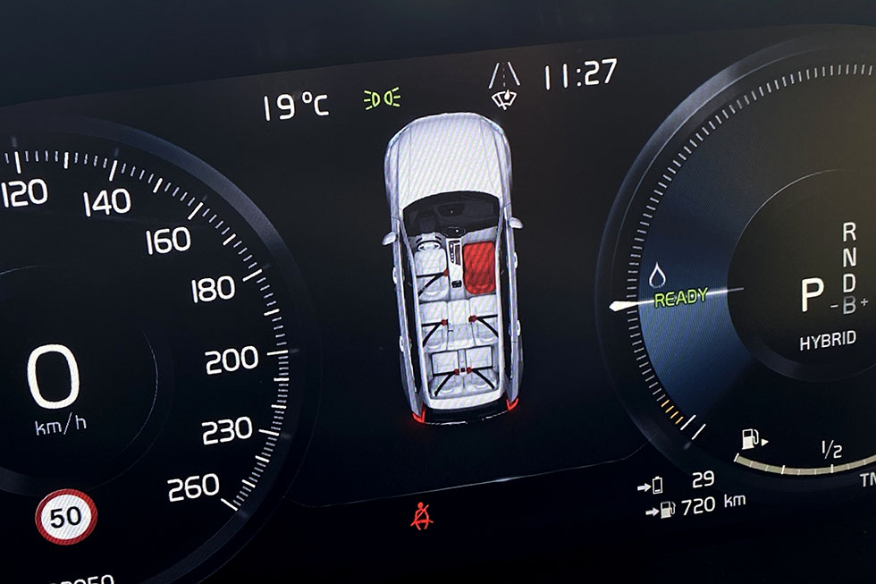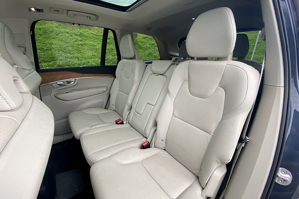 Depois de escalar para o habitáculo, o Volvo XC90 deixa-nos num mundo à parte, principalmente nesta versão Inscription, que recebeu um tom bege nos estofos em couro, aplicações em madeira com um estilo nórdico no tablier, consola central e painéis das portas, ou mesmo no comando da caixa de velocidades em cristal da Orrefors. Ao volante, a posição de condução é excelente e o assento oferece um patamar de conforto que nos dá vontade de arrancar numa viagem com a família, até porque lá mais atrás, espaço, é coisa que não falta nas outras duas filas de assentos. Na fila do meio, este ponto nem sequer é um tema de conversa, pois não existe qualquer dificuldade e na terceira fila, ainda que o espaço disponível não seja o mesmo, é suficiente para que adultos os possam utilizar e com um nível de conforto que não desilude. A sua utilização, que pode ficar disponível em segundos, dada a facilidade de rebatimento e fixação destes dois assentos, transforma os 640 litros de capacidade da bagageira em apenas 262. Mas mesmo assim, ainda é possível transportar muita coisa no espaço que fica disponível. E em viagem, além do espaço a bordo, há também a registar um elevado nível de conforto e uma serenidade a bordo que convida mesmo a apreciar a viagem e não a bater um recorde de tempo na chegada ao destino, já para não falar na sensação de segurança que este modelo nos transmite enquanto o conduzimos.