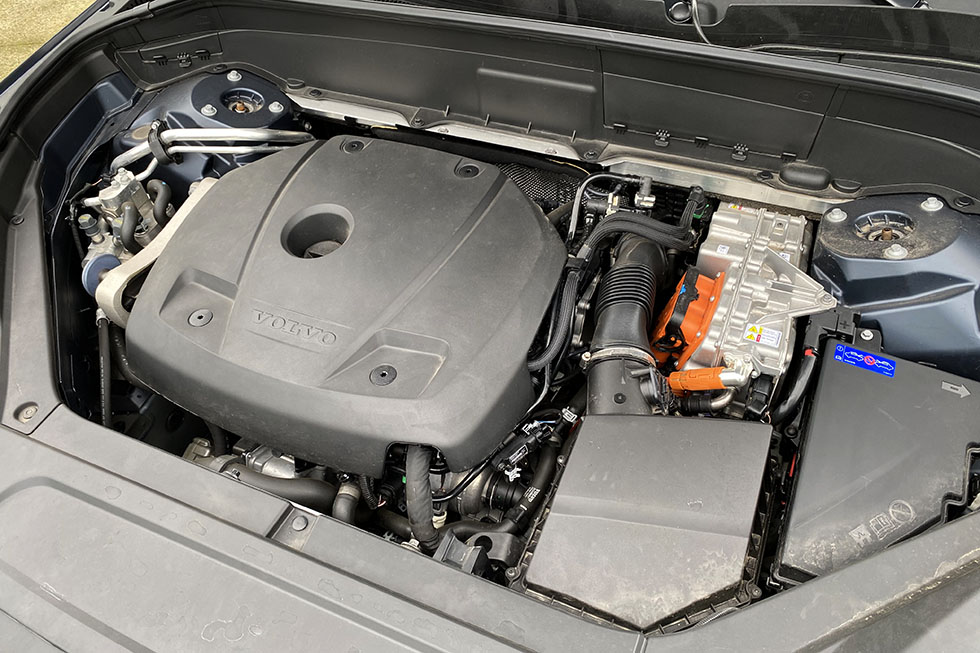 O sistema híbrido presente nesta versão T8 AWD inclui uma motorização a gasolina de dois litros com 303 cavalos de potência, mas também um motor elétrico de 88,4 cavalos instalado no eixo posterior, simulando um sistema de quatro rodas motrizes, tal como é indicado no AWD da designação. Este motor, é alimentado por uma bateria de 11,6 kWh, que está instalada no túnel central do XC90, não retirando espaço à bagageira nem ao habitáculo, quando comparado com as versões de motor térmico, e é suficiente para o XC90 consiga alcançar os 50 quilómetros de autonomia máxima em modo puramente elétrico. E a melhor parte é que este sistema pode ser carregado numa convencional tomada de 10 ou 16 amperes, em cerca de três ou quatro horas.