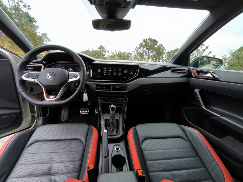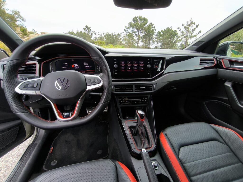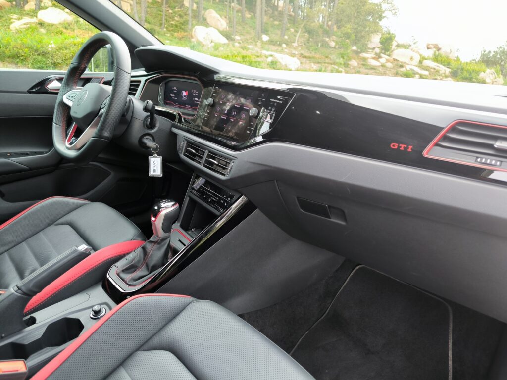 O interior das versões de base não nos tinha agradado tanto. As linhas mais simples usadas no Polo podem ser igualmente encontradas no Taigo, por exemplo, e já nessa altura ficamos com a sensação que faltou um pouco mais de inspiração e cor. Não era um interior feio, longe disso, mas faltava alguma irreverência que se pode encontrar no exterior. Mas nesta edição especial temos  bancos desportivos premium em pele perfurada preto-vermelha, logótipos GTI e um logótipo “One of 2500” no revestimento do painel das soleiras. Pequenos pormenores que dão mais vida e cor ao interior, tornando-o mais interessante. No entanto, tudo é construído de forma sólida, com materiais de plástico algo duro, mas sem pontos de inflexão ou ruídos parasitas. Há espaço para quatro pessoas e mais que isso será algo ambicioso. Também a mala tem o espaço q.b. longe de ser uma referência.  Os bancos são firmes, mas confortáveis, com bom apoio lateral, o volante dá boa sensação ao toque, quer na condução, quer no uso dos botões integrados.
