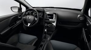 O equipamento interior é vasto. Contamos de série com cruise-control com limitador de velocidade, espelho electrocromático, sensor de luz e chuva, ar condicionado automático, sensores de estacionamento traseiros,volante em pele perfurada, os pedais em alumínio, manete da caixa de velocidades desportiva são elementos exclusivos, que o diferenciam este GT Line, que aposenta um visual desportivo através da aplicação de elementos como as molduras dos faróis adicionais em cinzento “Dark Metal”, nas capas dos espelhos, saias laterais do Clio R.S., difusor traseiro com saída de escape com ponteira cromada e jantes de desenho exclusivo.