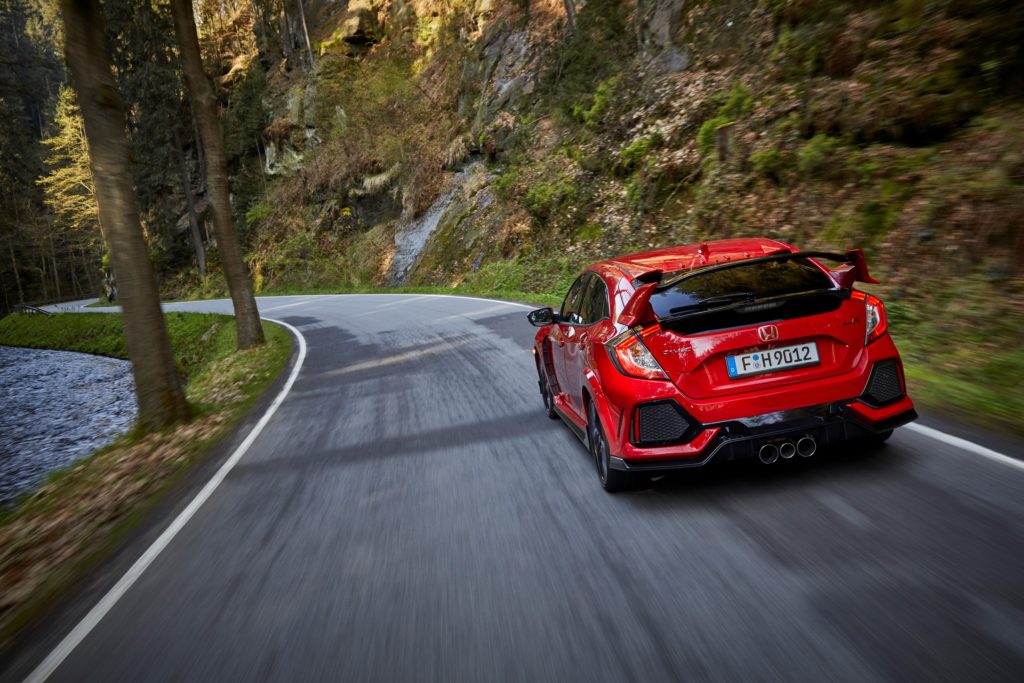 Posição perfeita de condução (é fácil encontrá-la nas verdadeiras bacquets), mãos firmes no volante e arranque a fundo sem “lauch control”. Mesmo sem esse preciosismo, o motor 2.0 litros turbo com sistema VTEC (com abertura variável de válvulas), coloca, em menos de um ápice, debaixo do pé direito 320 ferverosos cavalos e obriga-nos a largar o primeiro de muitos sorrisos. 5.7s dos 0-100 km/h já é um número que impõe respeito, mas não tanto quando se chega à primeira sucessão de curvas realmente já depressa. A bem trabalhada suspensão dianteira, com avançado sistema de duplo pivot, e sofisticado sistema independente multibraços atrás, que, em conjunto dão um grau de rigidez 38% superior face ao antigo Type-R, são o passaporte para a confiança e diversão, ao qual a perfeita afinação do diferencial autoblocante mecânico também não é alheia.