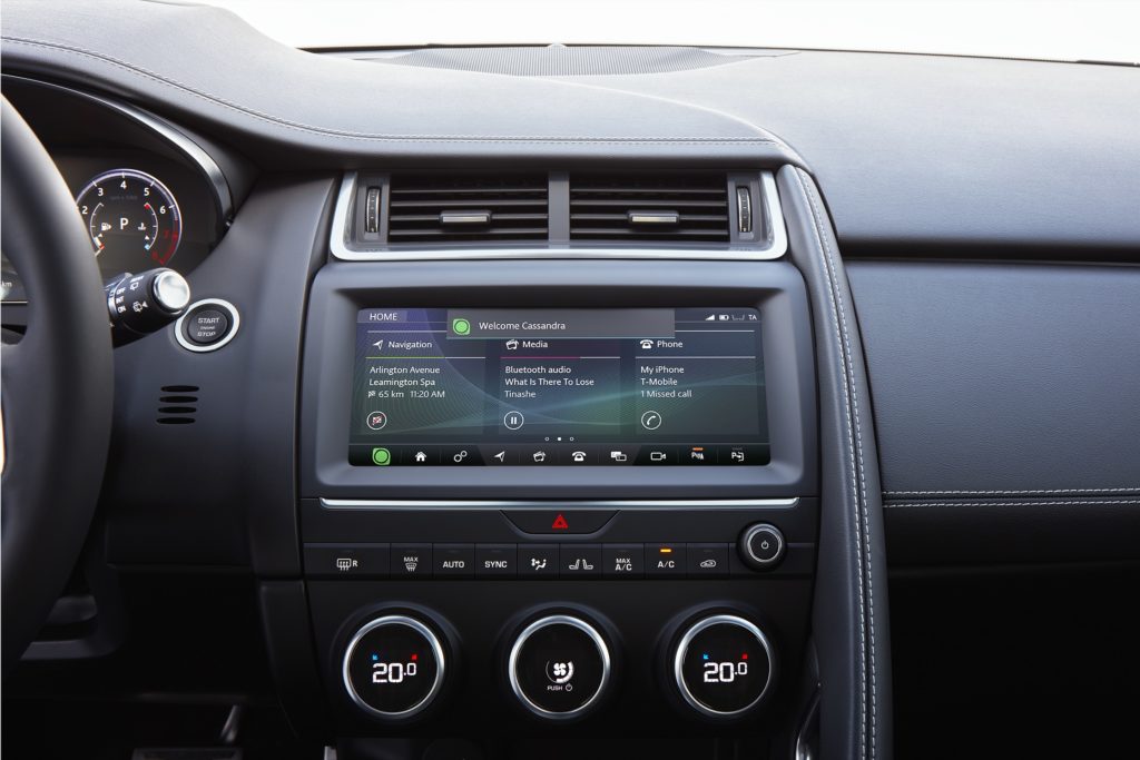 Mesmo optando pelo nível de equipamento S — existe ainda, além da versão base, os mais equipados SE e o HSE, além de um pacote R-Dynamic que pode ser acrescentado em qualquer uma destas versões —, não se pode dizer que o Jaguar E-Pace surja propriamente “despido”, já que inclui de série, não somente o Connect Pro Pack, mas também mais-valias como os faróis automáticos, limpa pára-brisas com sensor de chuva, espelhos retrovisores aquecidos, com anti-encandeamento, recolha elétrica e iluminação de aproximação, sistema de monitorização da pressão de pneus, sistema de reparação de pneus, ar condicionado automático de duas zonas, manómetros analógicos com ecrã TFT central, inControl Apps, sistema Touch Pro, Navigation Pro, Controlo Dinâmico de Voz, controlos por voz, assistente de estilo de condução ECO, travão de estacionamento elétrico e botão de arranque.