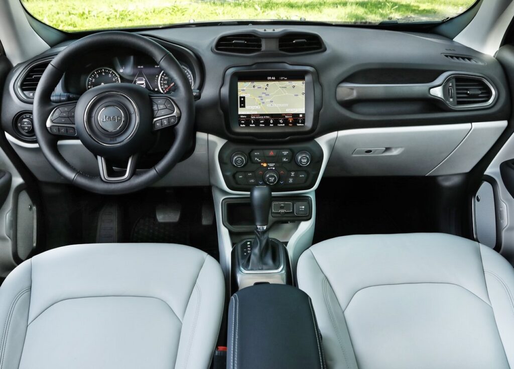 Igualmente presente, o ar condicionado automático bi-zona, retrovisores elétricos com desembaciamento, porta USB para passageiros, serviços Live Connect, sistema multimédia Uconnect Rádio de 7″ com MP3, AUX, USB, Bluetooth, Apple Carplay e Android Auto, TFT premium a cores de 7″ no painel de instrumentos, porta USB traseira e porta de cartão SD.