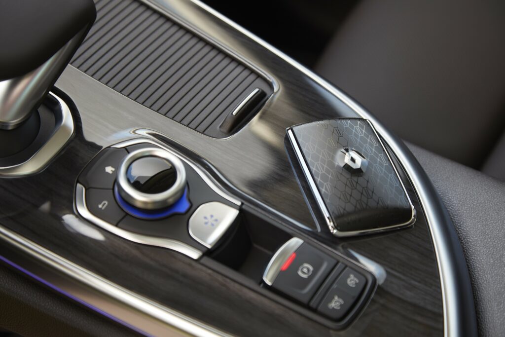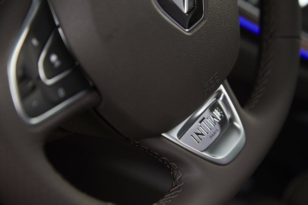 Assim, optando por esta versão Initiale Paris, a garantia da presença no equipamento de série do sistema de quatro rodas direccionais 4Control, do amortecimento pilotado, do sistema de recuperação de energia na travagem, do sistema de modos de condução Multi-Sense, do Grip Control e do travão de estacionamento assistido. Além da comutação de automática de luzes de estrada/cruzamento, tecto panorâmico fixo, ar condicionado automático de três zonas, sistema R-Link 2 com ecrã táctil de 8,7″, comando de voz e navegação 3D, sistema áudio BOSE com 12 colunas, iluminação do habitáculo personalizável na cor e intensidade, cartão Renault “Mãos-Livres””, estofos em couro Premium castanho escuro, apoios de cabeça traseiros “Grande Conforto”, e das jantes em liga leve de 19″ “Initiale”.