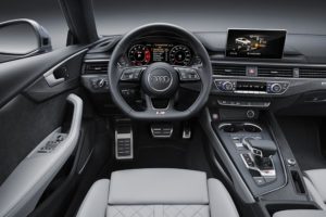 A estrutura do menu no sistema MMI foi redesenhada. O Audi virtual cockpit é uma alternativa ao painel de instrumentos analógico para o novo A5 Sportback. Já o head-up display projeta todas as informações relevantes no para-brisas como símbolos e dígitos facilmente compreensíveis, minimizando a distração do condutor. A informação surge a cerca de dois metros na frente do condutor dentro de uma área do para-brisas que mede 200 x 80 mm. Há ainda o controlo natural de voz para maior comodidade Infotainment e Audi connect. Sistema opcional de infotainment de topo MMI navigation plus com MMI touch e ecrã MMI de 8,3 polegadas, incluindo Audi connect com licença gratuita durante três anos, transmissão LTE. “Audi connect safety & service” com assistência online em estrada, assistência de chamada de emergência, solicitação de serviço e funções remotas via app Audi Connect. Audi smartphone interface para ligação aos sistemas celulares da Apple e Android no sistema Audi MMI. Sistema de áudio: Bang & Olufsen Sound System com inovador som 3D, 19 altifalantes e potência de 755 watts - Audi tablet amovível para o banco traseiro (Rear Seat Entertainment system).