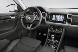 Entre os novos equipamentos de segurança e auxílio à condução, divididos entre o equipamento de série e a lista de opcionais, o destaque vai para o novo sistema de assistência de parqueamento com visualização a 360 graus (Area View), assistência de controlo do reboque (Tow Assist), sensores para deteção de peões e de automóveis estacionados, A Skoda continua a inspirar-se em grandes animais para dar nomes aos seus SUV, mas agora passa dos mitológicos para os reais, com o Kodiaq, que vem ocupar o lugar do Yeti, um automóvel maior, mais espaçoso e mais confortável cruise control adaptativo, e radares para assistir com a mudança de faixa e o ângulo morto. Para o público, o sistema SmartLink permite conectar a smartphones com sistemas Apple, Android, MirrorLink e SmartGate.