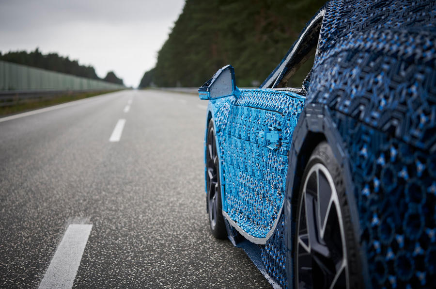 Segundo um porta voz da Lego, a construção deste Bugatti é feita através de “uma complexa teia de peças triangulares ligadas umas às outras que pretendem igualar as linhas do Chiron.” O mesmo se passa no interior do modelo, com tudo o mais aproximado possível do real. Detalhe importante: este Chiron Lego Technic está equipado com as jantes e pneus iguais ao carro real.