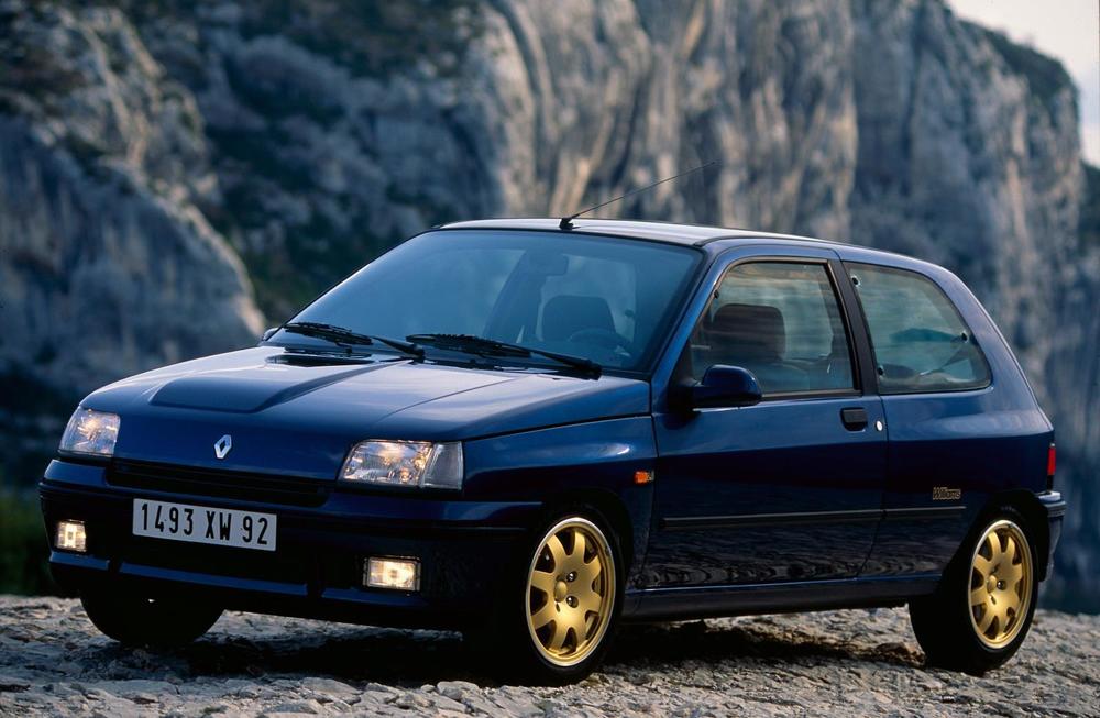 Renault Clio Williams: saído de uma parceria entre a Renault e a Williams, o modelo, de tonalidade azul na carroçaria e jantes douradas, tinha um motor 2.0 litros a gasolina com 150 cv;