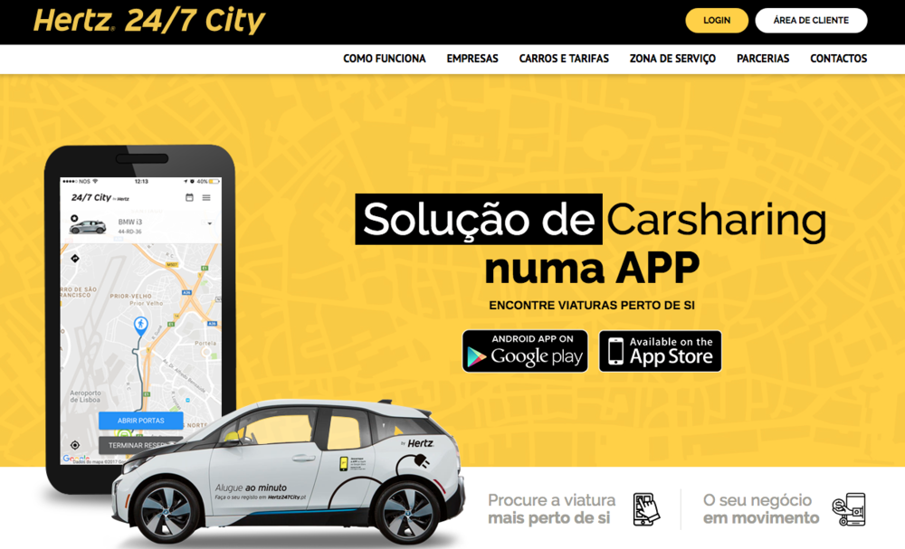 24/7 City: é um serviço da empresa de rent-a-car Hertz, com uma área de atuação em Lisboa que é mais restrita que a DriveNow e Citydrive;