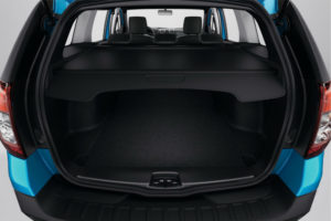 As cavas das rodas e a parte inferior da carroçaria têm proteções específicas e as capas dos retrovisores são da cor Dark Metal, com a designação Stepway presente nas portas da frente. As barras de tejadilho surgem também na cor Dark Metal. Na traseira, os faróis recebem uma máscara negra e o Novo Logan MCV Stepway dispõe, também, do pára-choques bi-tom e das proteções cromadas. O Novo Logan MCV Stepway será lançado na emblemática cor azul azurite, característica da família Stepway.