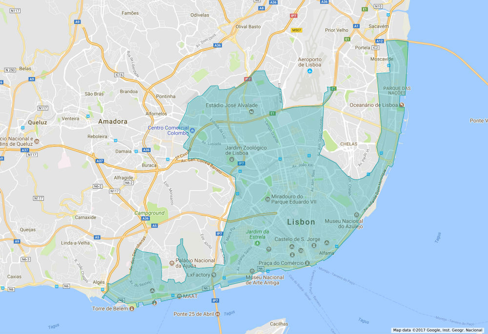 Em Lisboa, a área de operação inicial cobre 48 quilómetros quadrados, de Leste a Oeste e de Norte a Sul da cidade, assegurando serviço nas suas zonas mais movimentadas e mais procuradas.