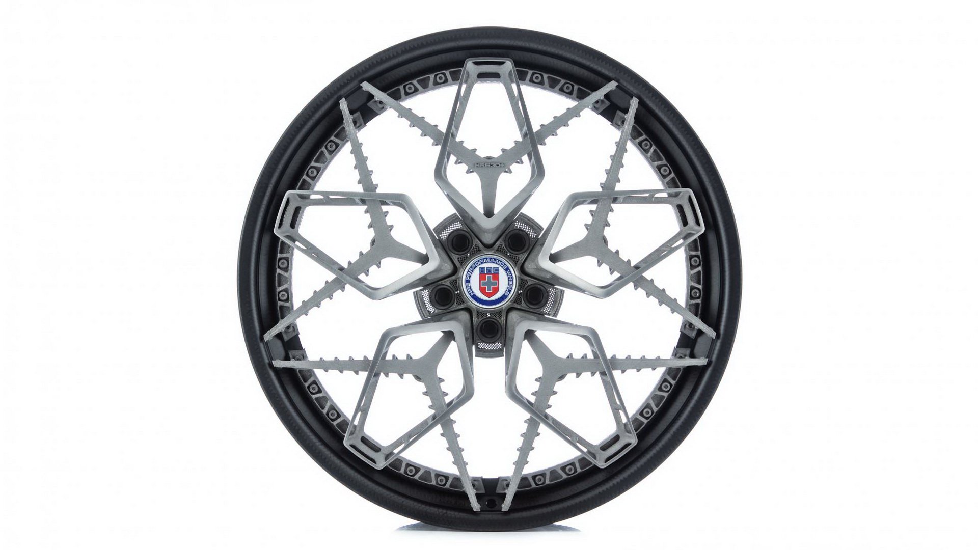 A jante “HRE 3D” é produzida em cinco partes diferentes que depois são combinadas num centro de jante feito em carbono sendo fixa com parafusos de titânio.