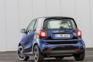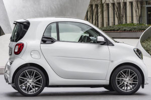 Exteriormente, esta versão distingue-se pelos para-choques específicos e o difusor traseiro com dupla ponteira de escape. As jantes, exclusivas do Fortwo Brabus, são fabricadas em alumínio, de 16 polegadas à frente e de 17 no eixo traseiro.
