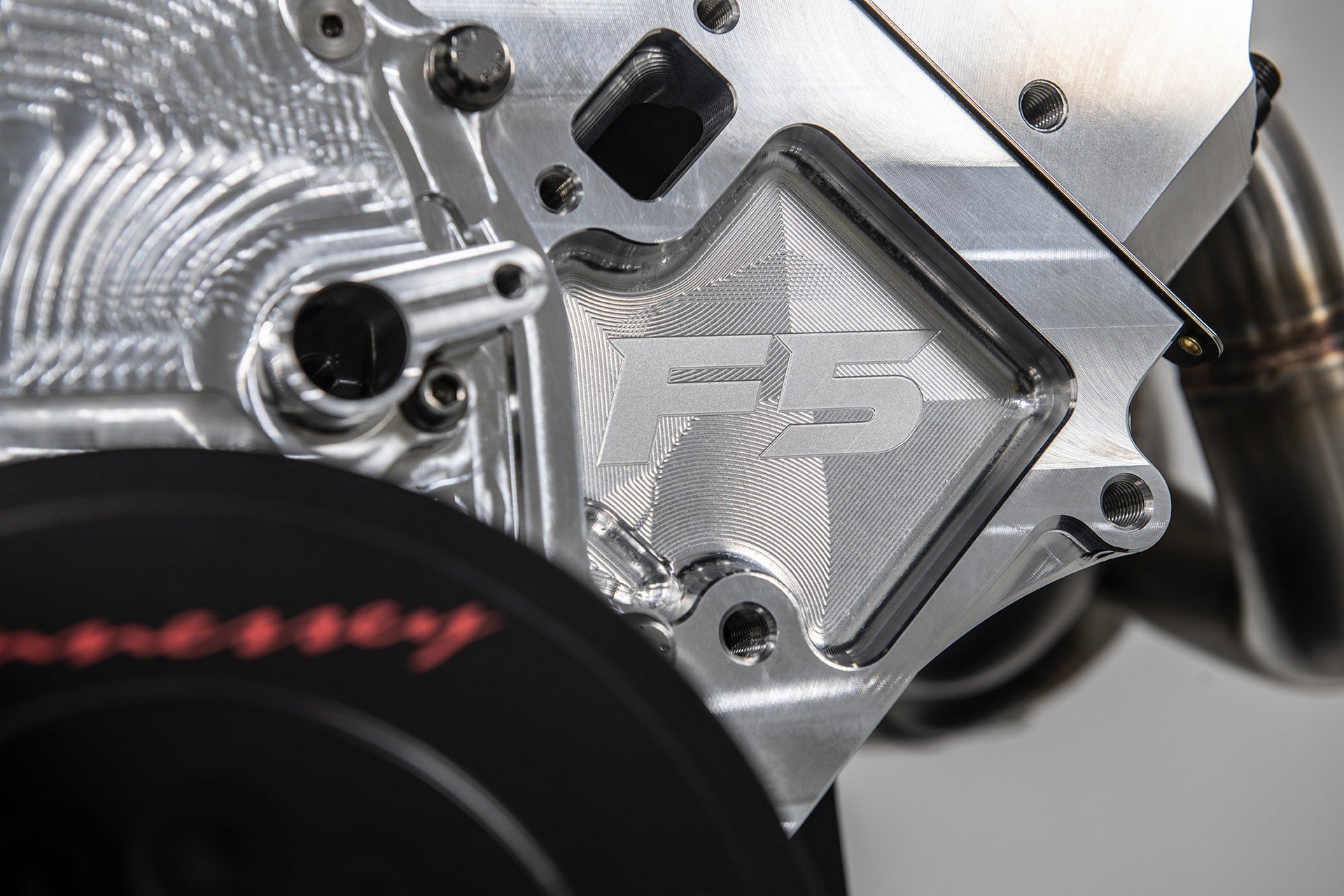 O bloco da Hennessey é feito em alumínio com camisas em aço (para maior fiabilidade, claro), tem uma compressão de 9,3:1 e cabeças em aço inoxidável.