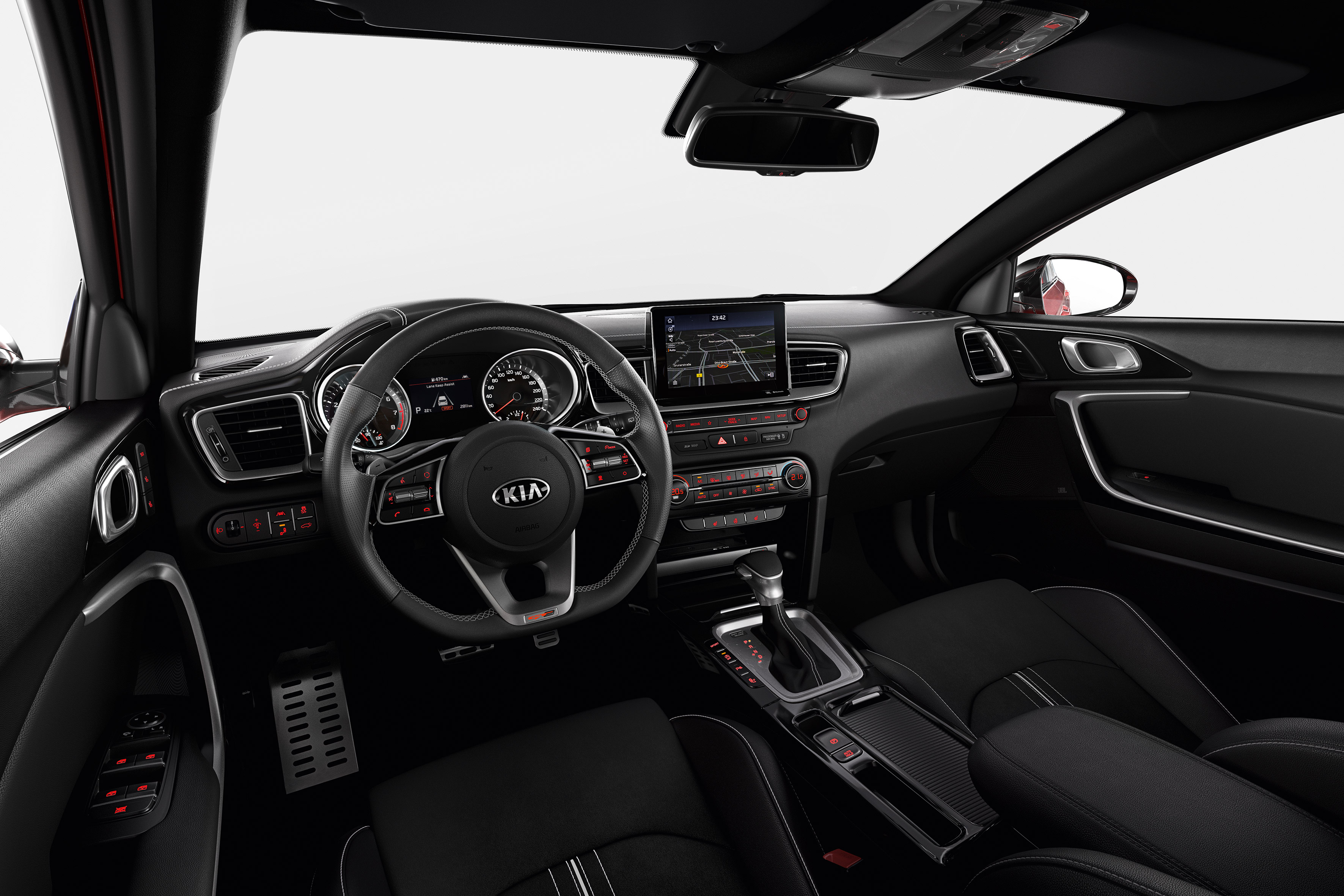 O revestimento do tejadilho cinzento do Ceed e da Sportswagon é substituído por tecido preto, as embaladeiras das portas apresentam chapas de revestimento metálicas e o volante tem, nas versões com caixa de velocidades de dupla embraiagem, patilhas de comando da caixa em metal.