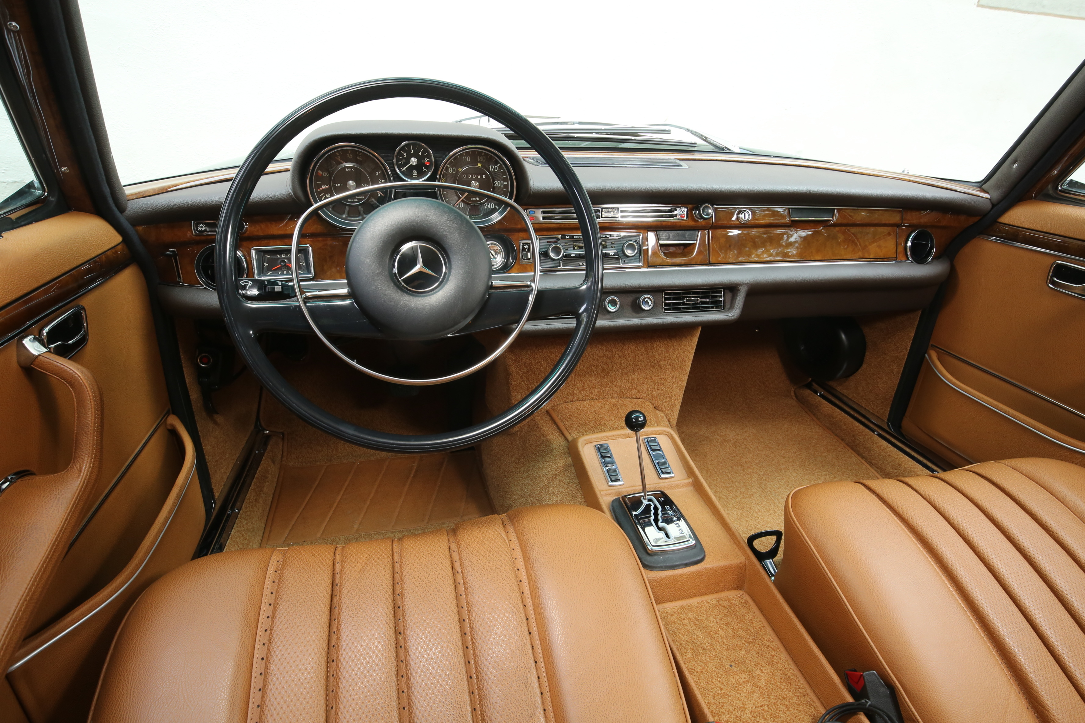 No interior, um velocímetro com uma escala maior, um conta-rotações na versão de série e um diferente posicionamento do relógio distinguem o “6.3” do 300 SEL. A suspensão pneumática e o controlo automático da altura ao solo fornecem uma excelente base para o modelo desportivo: adapta-se automaticamente às variações da carga. Os travões de disco ventilados internamente nas quatro rodas asseguram uma ótima travagem. O vasto equipamento de série também inclui assistência à direção, uma caixa de velocidades de comando suave e rápido, um bloqueio do diferencial, vidros elétricos e um fecho central pneumático.