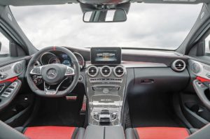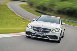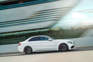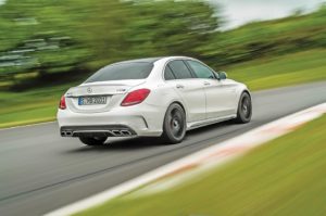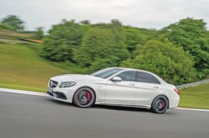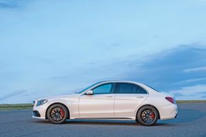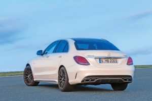 A versão ’S’ do C 63 AMG da Mercedes é a mais potente que um potencial cliente pode adquirir quando se desloca ao concessionário da marca à procura do seu familiar-médio. Utiliza o mesmo motor de oito cilindros e 4.0 litros de cilindrada do incrível AMG GT, socorrendo-se da injeção direta e de dois turbocompressores para entregar potências que oscilam entre os 476 cv do C63 AMG ‘normal’ e os 510 cv já referidos no ’S’, sendo que o binário também sobe de 650 para 700 Nm quando comparadas as duas versões. Valores impressionantes, sem dúvida, mas com pouco impacto na real percepção de quem os conduz, tendo em conta que os ganhos na aceleração são irrisórios 0,1s (4,1 vs 4,0s dos 0-100 km/h), e que a velocidade máxima está limitada a 250 km/h. A maior diferença está, então, no diferencial autoblocante traseiro: no C 63 é mecânico e no C 63 S controlado eletronicamente.