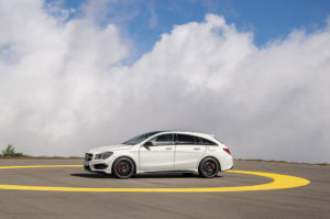 Do ponto de vista emocional, a opção por esta CLA 45 AMG Shooting Brake apresenta ganhos evidentes. Tudo é ‘mais’, no espaço (em altura e na bagageira, que apresenta mais 25 litros do que a versão de cinco portas para um total de 495 litros – 1354 litros com os bancos rebatidos), na elegância (quem não gosta de uma carrinha com tejadilho descendente e de rodas enormes abrilhantadas com pinças vermelhas?), na potência (os 21 cv a mais desta atualização operada pela Mercedes, à conta de mudanças na distribuição, traduziram-se em menos 0,4s no intervalo até aos 100 km/h) e… no consumo (chegou aos 11,8 litros, contra os 6,9 litros anunciados, embora possamos admitir que é difícil manter uma toada ecológica perante a vivacidade do motor de quatro cilindros), sendo este o aspeto menos positivo, a juntar ao preço (66 800€, versão base, ou 77 516€, versão ensaiada, no qual não faltaram extras como as tais jantes de 19 polegadas – 1200€ – que adorámos, as pinças vermelhas – 400€ – e o pack night AMG – 850€ – com acabamentos a negro do para-choques, saias laterais, espelhos e ponteiras de escape) desta variante.