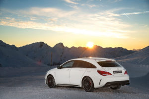 Não há milagres, nem se pretende enganar ninguém. A CLA Shooting Brake está longe de ser uma carrinha espaçosa, não só pelo segmento em que está inserida (B), mas também porque a tal curvatura do tejadilho que lhe dá o aspeto coupé obrigou a um certo compromisso, nomeadamente no que ao espaço para a cabeça de quem viaja atrás diz respeito. Apresenta, ainda assim, mais 6 cm extra em altura face ao CLA de cinco portas, garantindo que os ocupantes não bate com a cabeça no teto a cada solavanco mais repentino, isto apesar de partilharem o mesmo comprimento (4,63m) e a mesma distância entre eixos (2,69 m). O túnel de transmissão é que não ajuda nada ao transporte de cinco ocupantes, por isso o melhor é garantir que viajam apenas quatro (dois atrás) para a comodidade de todos. Minudências à parte importa saber o que se ganha com este CLA 45 AMG, e que na nossa opinião começa logo pelos muitos anos de vida pela experiência ao volante. A caixa automática speedshift de dupla embraiagem e sete velocidades ‘embala-nos’ com uma facilidade e velocidade incríveis, e as patilhas no volante contribuem em muito para esse prazer no ataque desenfreado às curvas mais exigentes, enquanto o sistema de tração integral 4matic garante uma precisão e estabilidade determinantes para uma condução mais desportiva.