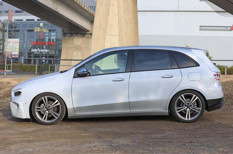 Com o código interno W247, o Classe B vai manter a forma semelhante á de um monovolume, porém, exibindo o novo ADN do estilo da Mercedes. Isso será visível, por exemplo, na lateral do carro que deixa de ser esculpida e com superfícies contrastantes, para optar por painéis simples e lisos. A frente terá os faróis e a grelha conhecida do Classe A, enquanto na traseira, a maior mudança está na forma do óculo traseiro, mais inclinado que o atual modelo. É fácil concluir que a Mercedes deseja continuar com o mesmo nível de acessibilidade, conforto, habitabilidade e funcionalidade, pois as portas e as zonas de acessos são muito semelhantes ás do atual modelo, com o portão traseiro a abrir até bem abaixo no para choques.