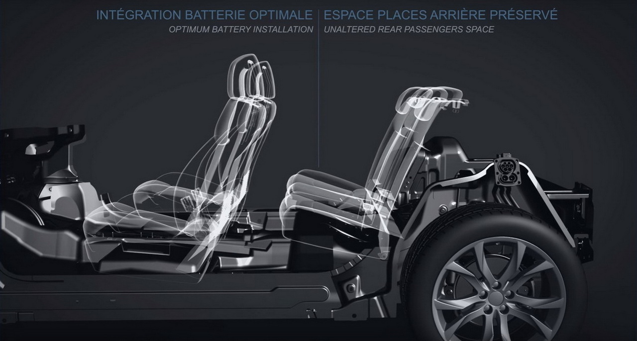 A plataforma CMP é diferente da MEB do grupo VW (exclusiva para modelos elétricos) sendo capaz de utilizar todos o tipo de motores, térmicos ou elétricos. Neste último caso, o 208 terá um único motor com 136 CV e 260 Nm de binário, baterias localizadas no fundo do carro, com o eixo traseiro a ser ligeiramente recuado para esse efeito. O carro não terá sistema de climatização, existindo no seu lugar uma nova geração de bomba de calor (que desta feita funciona não até aos 5 graus negativos, mas até aos 37 graus negativos), que consome entre um quarto a um terço de energia de um sistema convencional, oferecendo 50 km de autonomia. Os dispositivos de recuperação de energia na travagem e na desaceleração conseguem recuperar 20% de energia em cidade. O 208 terá um sistema de recarga externa da bateria (Plug In), que dura de 5 a 8 horas (Wallbox de 11 kW) ou 30 minutos (80% da carga) numa tomada de 100 kW. Em 2020, o PSA Group terá novos motores elétricos feitos pela japonesa Nidec e pacotes de baterias otimizados.