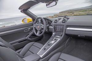 A marcar a diferença está, sobretudo, a turboalimentação, sendo que o mais potente Boxster S, de 2,5 litros (e não 2,0 litros do Boxster ‘normal’) utiliza um turbocompressor com geometria variável. Com isso a marca promete mais 35 cv e menos 13% de consumo para as duas versões, tudo o que se quer nesta era de desportivos cada vez mais ‘poupadinhos’. É verdade: também o binário cresceu, para 380 Nm entre as 1950 rpm e as 4500 rpm no 718 Boxster (+100 Nm), e para 420 Nm entre as 1900 rpm e as 4500 rpm no Boxster S (+60 Nm) – o maior aumento na história da Porsche. A ajudar estes números está o reforço das paredes dos cilindros, mais resistentes, e com isso a reduzir a fricção, a colocação do injetor no centro da câmara de combustão e o aumento da pressão até 250 bar. Há ainda a modificação da posição da árvore de cames, e igualmente do curso de válvulas de admissão, bem como a sua refrigeração indireta.
