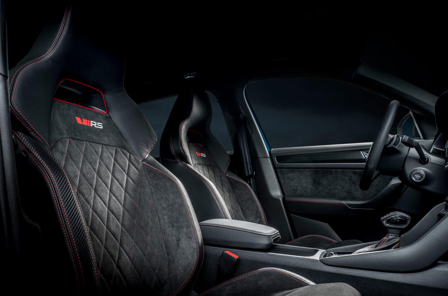 Por fora e por dentro, há várias referências à vRS. No exterior, cavas das rodas são diferentes, os para choques foram ligeiramente redesenhados e jantes de 20 polegadas novas. O próprio logótipo vRS foi melhorado, com o v a aparecer pintado de vermelho.