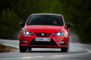 Sentamo-nos ao volante e a sensação aumenta. O corpo encaixa que nem uma luva no banco de cunho desportivo, que nos proporciona uma posição de condução a rigor e que ajuda a espicaçar o desejo de explorar o bloco de 4 cilindros a gasolina. O carro é pragmático, dando-nos apenas dois modos – Normal e Sport. Um para andar depressa, o outro para andar muito depressa! E de facto assim é. O compromisso peso/potência (1143 kg/192 cv) joga a favor do prazer, num veículo em que se respira desejo de velocidade. É gritante a facilidade e rapidez com que o ponteiro do velocímetro galga os 100 km/h – são precisos apenas 6,2s. A entrega de potência surge desde baixos regimes e mostra ter sempre algo mais a ‘acrescentar’. Rápido em retas, mostra-se bastante ágil em percurso sinuoso, com o comportamento do chassis a impressionar, principalmente no modo Sport. A direção mais direta e as suspensões mais firmes – em demasia no mau piso, com as irregularidades a fazerem-se sentir no corpo – permitem a inserção em curva da frente de forma muito precisa e possível a velocidades francamente elevadas, muito graças ao diferencial dianteiro eletrónico autoblocante XDS que equilibra os excessos… que no Ibiza Cupra são inevitavelmente frequentes! A leveza do conjunto faz o SEAT parecer um carro para brincar e se domar a nosso bel-prazer, que é realmente muito.
