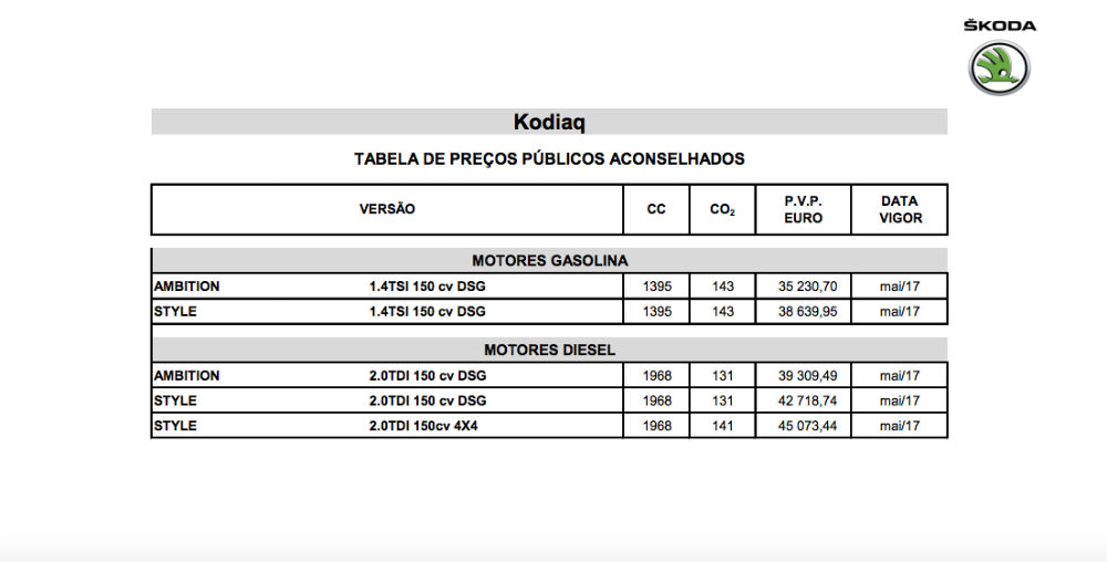 A Skoda já revelou os preços para o seu novo SUV Kodiaq – disponível em duas opções de motor – em Portugal: a partir dos 35.230 euros.