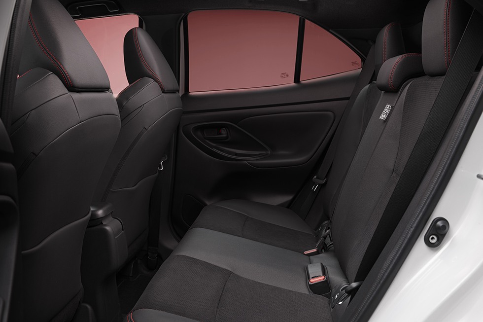 Estava assim ao vivo a versão mais desportiva do Yaris Cross. E o que traz este modelo? As alterações mais visíveis são as da carroçaria, que recebe uma pintura de dois tons, além dos pára-choques de visual mais desportivo com grelhas a condizer. Além disso, há também jantes de liga leve com 18 polegadas de diâmetro e uma nova cor para a carroçaria, o cinza dinâmico, que será sempre disponibilizado em combinação com o tejadilho em negro. No habitáculo não há como esquecer que estamos dentro de uma versão GR com o logotipo bem presente. Temos assentos mais desportivos e com um maior apoio lateral, forrados em pele e Alcantara, com costuras em vermelho, além do volante e da caixa de velocidades que também recebem o mesmo acabamento em pele, com pespontos vermelhos.